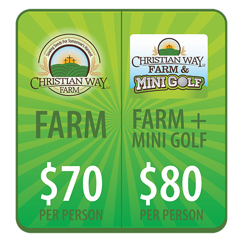 Visit our Farm page for full information about what admission includes for our Christian Way Farm Season Passes. Visit our Mini Golf page and learn more if you decide a Farm + Mini Golf Season Pass is right for you!